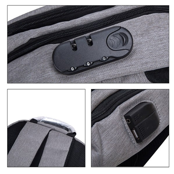 密碼鎖牛津布USB充電口商務雙肩背包