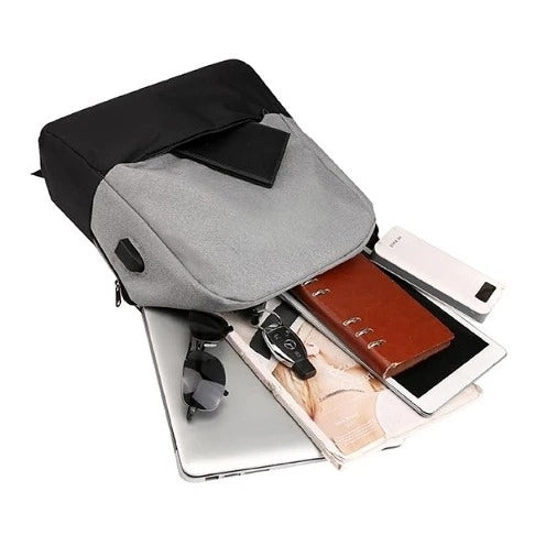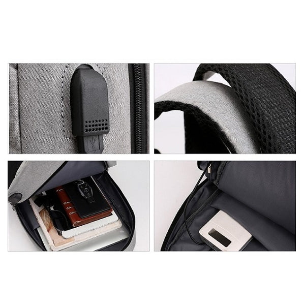 拼色雙肩USB電腦包