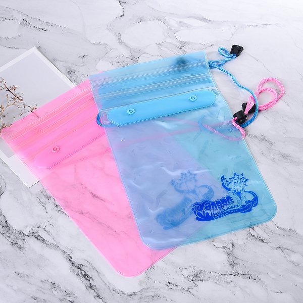 2. 大容量設計,完全包覆手機,17.5*28.5cm尺寸適合6吋以下手機,堅固PVC材質耐用,保護手機不受水損害。
