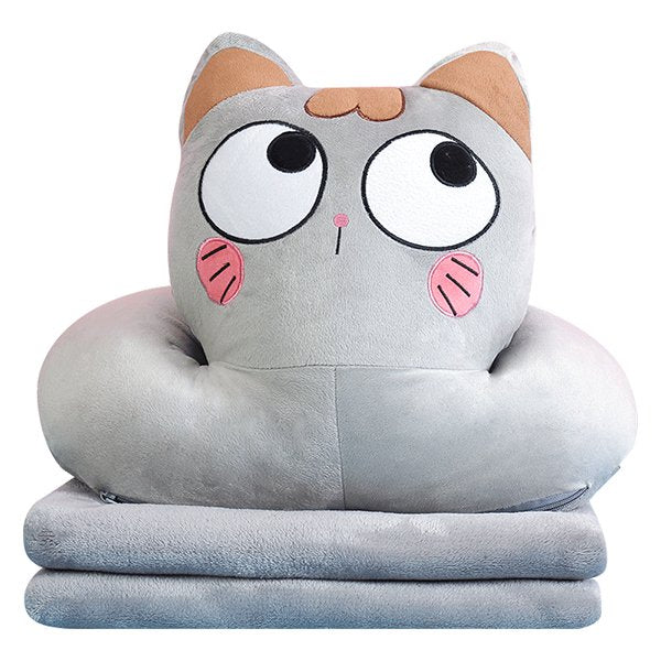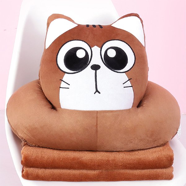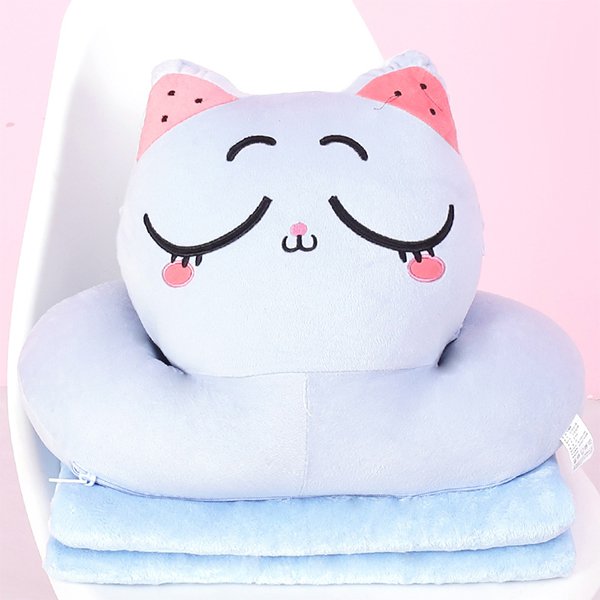 1. 貓咪造型辦公室毛毯午睡枕,材質為滌綸