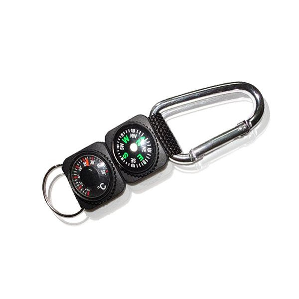 2合1登山扣溫度計指南針-附鑰匙圈環