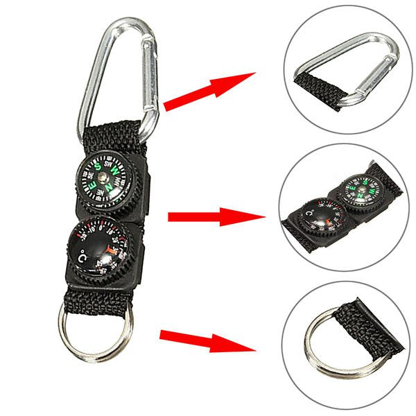 2. 2合1登山扣溫度計指南針,登山必備,讓您在山上不再迷路。輕巧便攜,附鑰匙圈環,隨時使用。