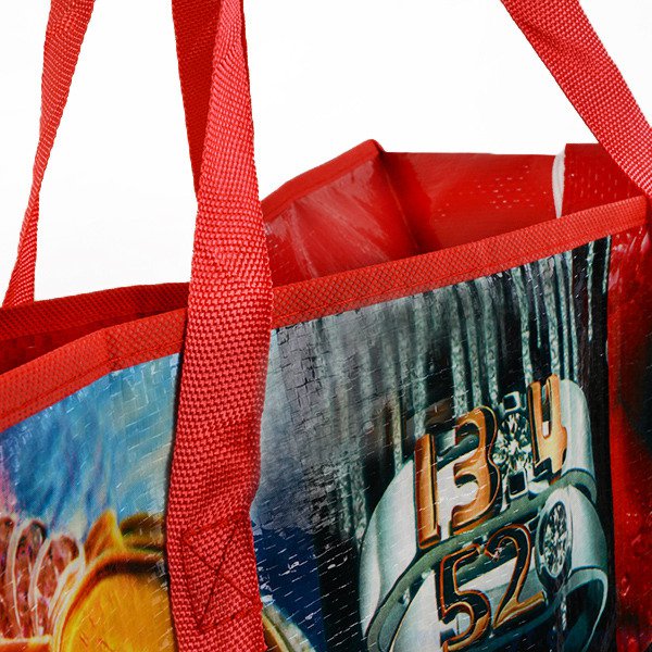 2. 購物袋採用編織袋材質,貼合亮面OPP膜,防水防髒,耐用穩固。