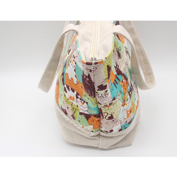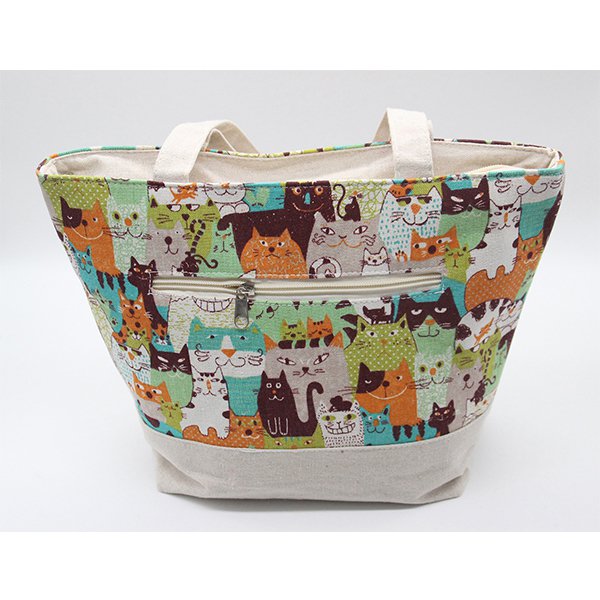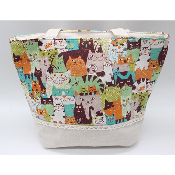1. 貓咪輕量拉鍊手提袋採用帆布材質,尺寸為34*24*21cm,適合多種場景使用。