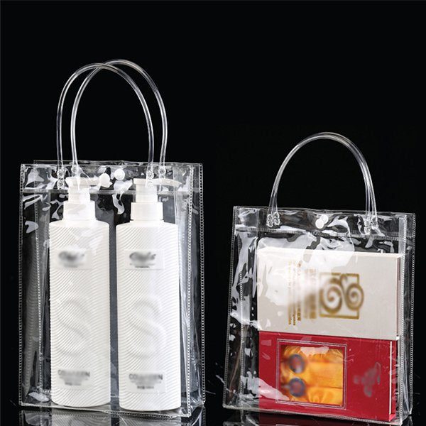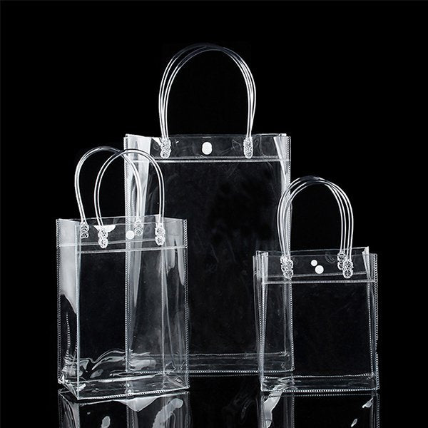 1. PVC透明手提袋,材質堅固耐用,尺寸為15*20*7CM,厚度達30絲,適合多種場景使用。