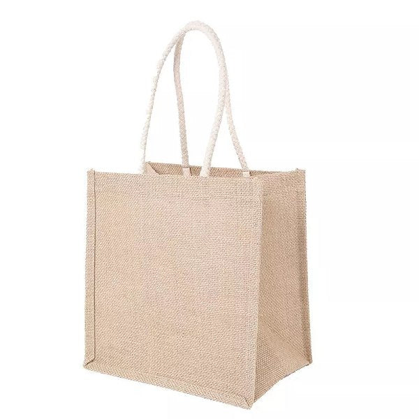 1. 黃麻購物袋材質環保,厚度達350gsm,尺寸為25*25*13cm,結實耐用。