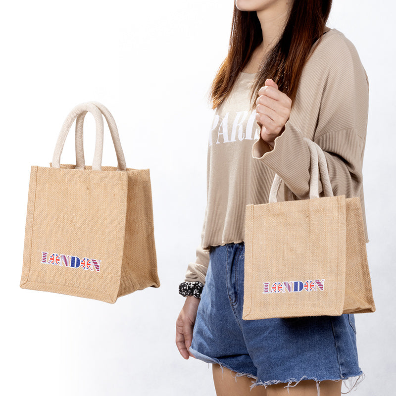A6方形黃麻購物袋-客製全彩燙印