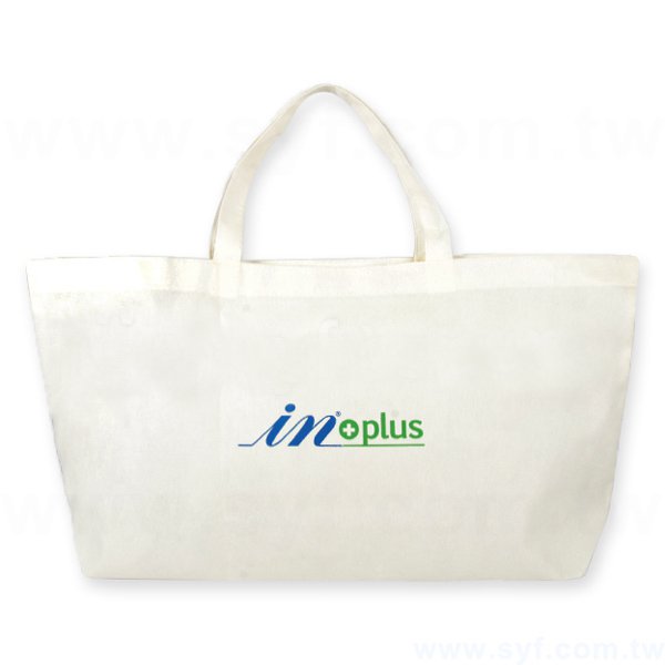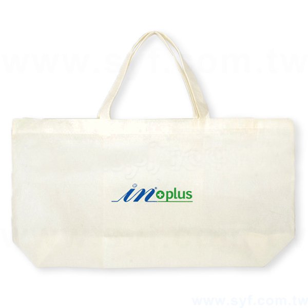 2. 可客製化印刷公司LOGO或團體專屬圖案,厚度為80g,尺寸為W56*H29*底12cm,提帶長度為2.5*43cm。