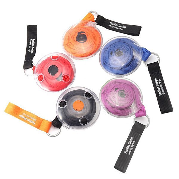 圓形易拉式收納袋-聚酯纖維摺疊購物袋
