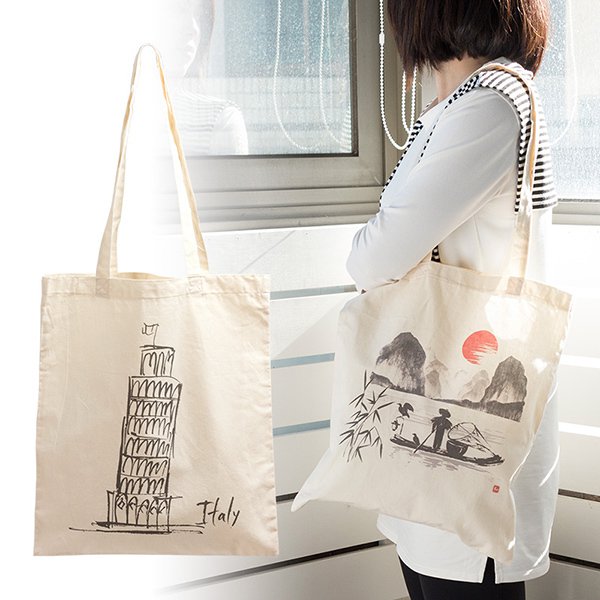 2. 天然環保純棉購物袋,單面彩色印刷,尺寸約寬37x高40公分。