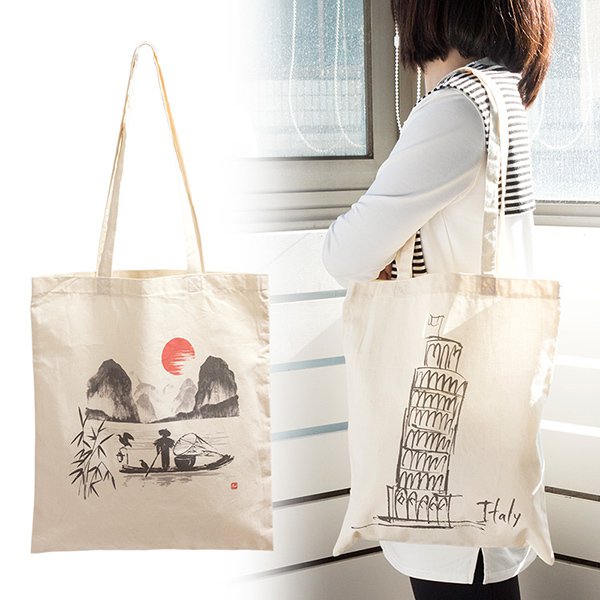 肩揹環保袋-本白棉布-單面彩色印刷購物袋