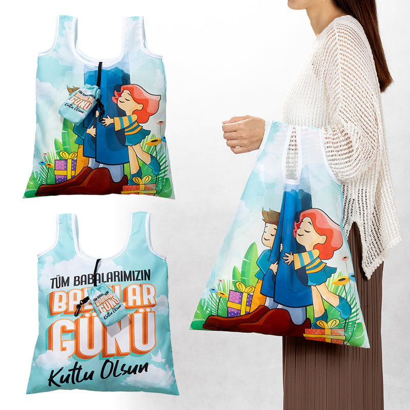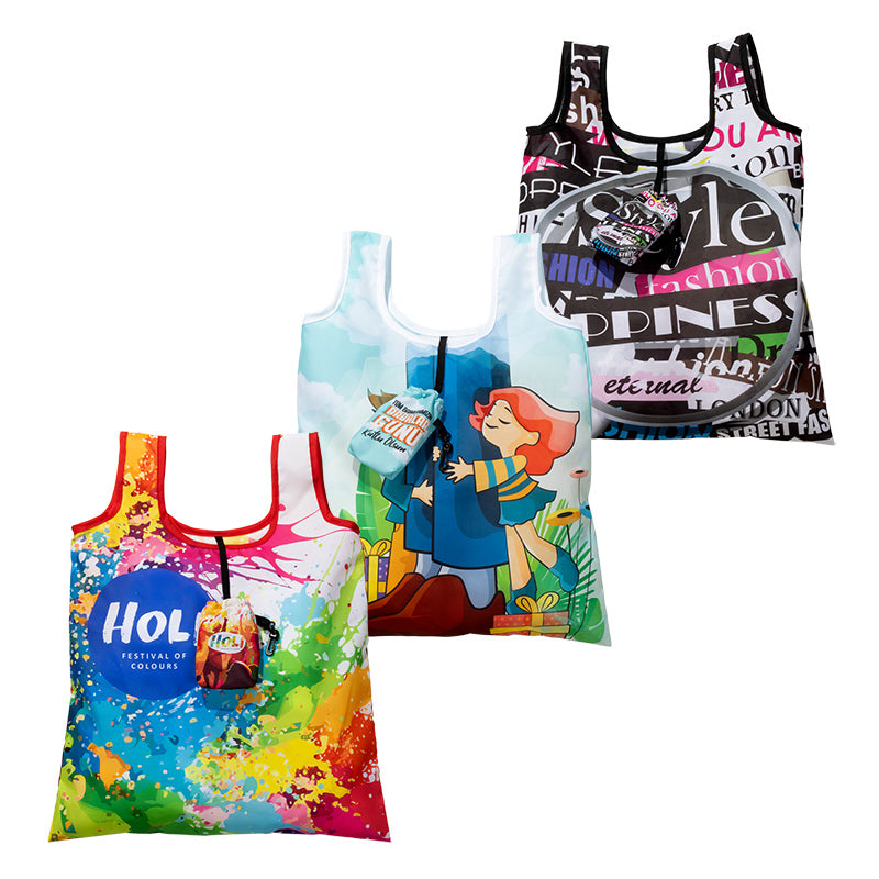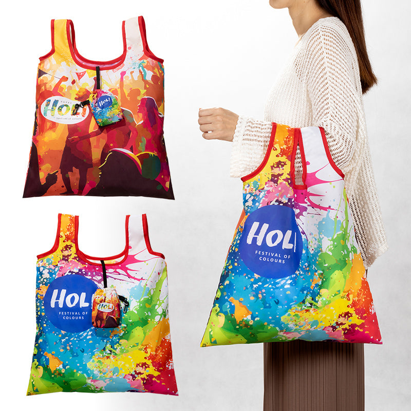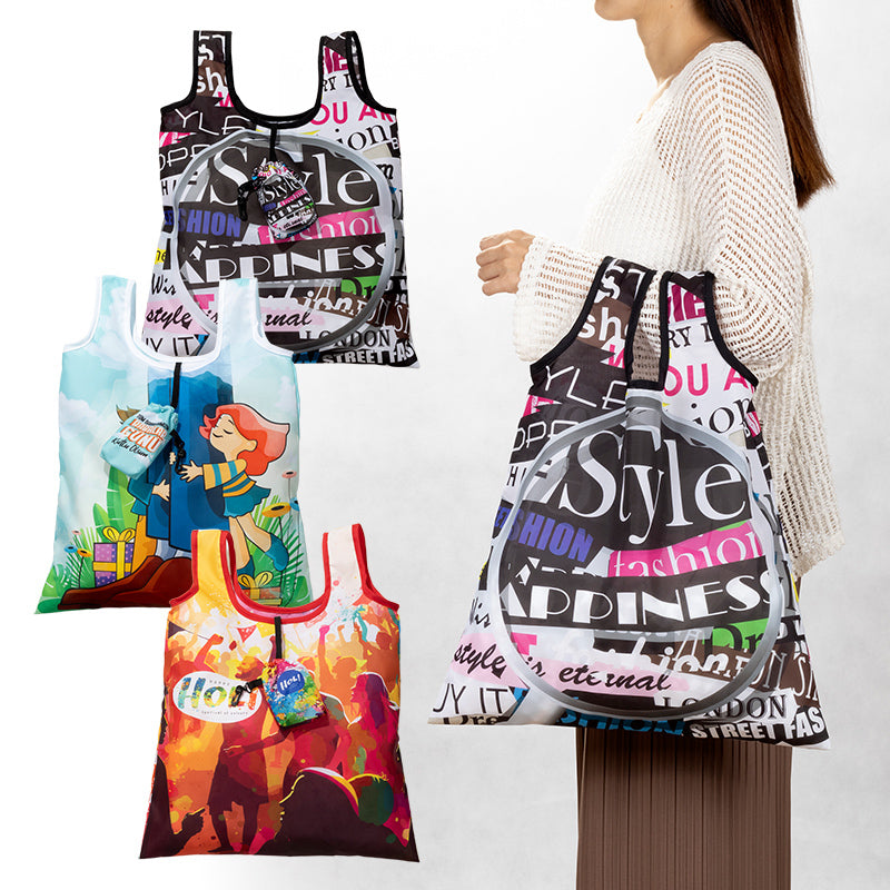手提摺疊環保袋-75D雙透布-雙面彩色印刷購物袋(附小收納袋)