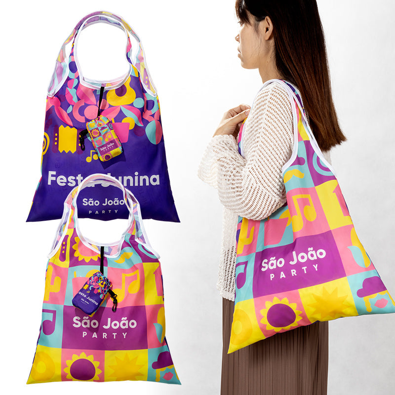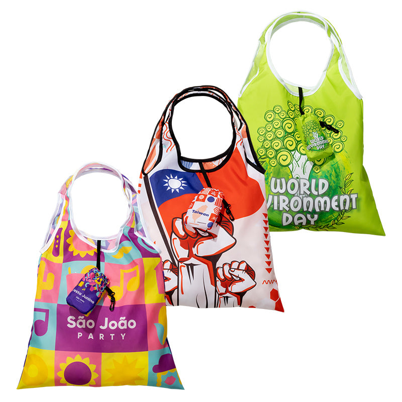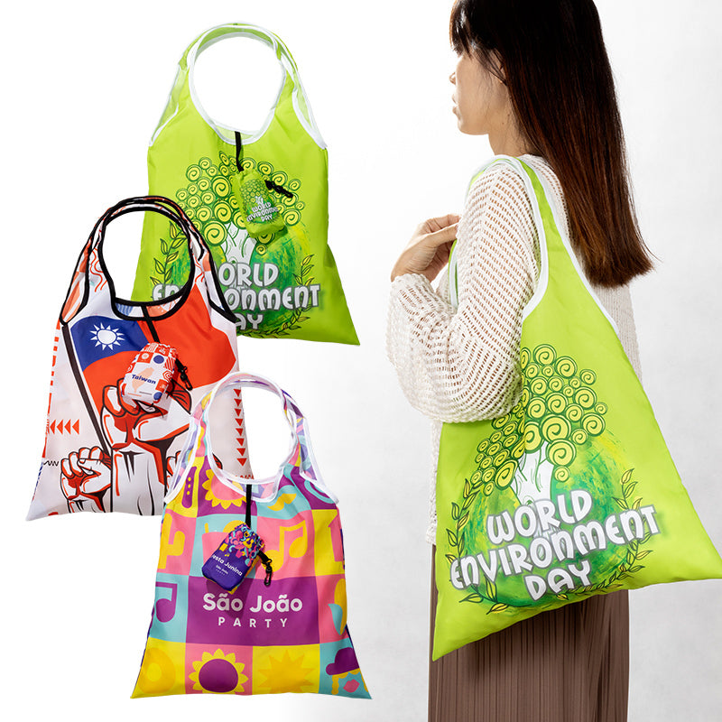 肩揹摺疊環保袋-75D雙透布-雙面彩色印刷購物袋(附小收納袋)