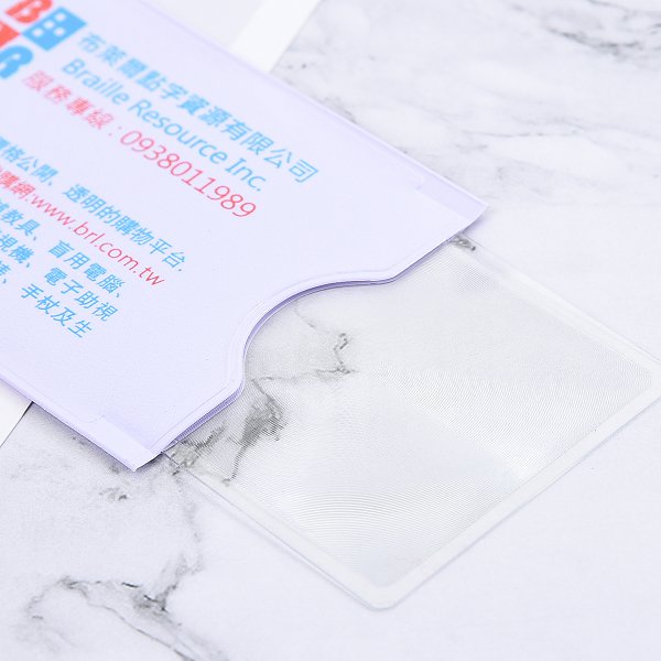 1. 名片型放大鏡尺寸為90x65mm,輕巧方便,隨身攜帶使用。
