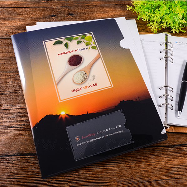 1. A4單層L夾,厚度可選180um/210um,PP材質,UV油墨印刷,選擇白墨顏色飽和。