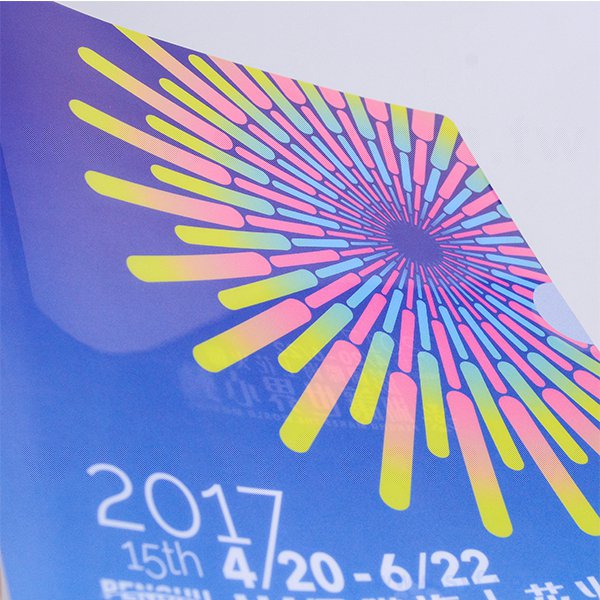 1. A4單層L夾,厚度180um,PP材質,半透明特性。可選A4/A5/A6尺寸,UV油墨印刷,白墨顏色飽和。印刷成品色彩獨特,耐久不易損壞。