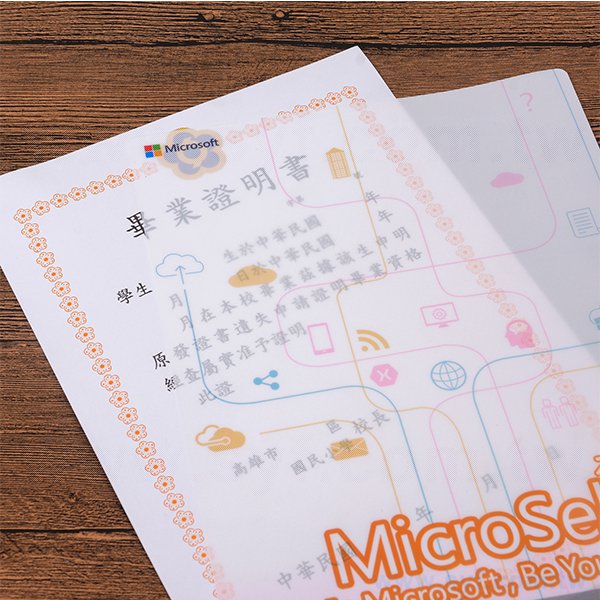 2. 透明資料夾半透明設計,採用UV油墨印刷,白墨顏色飽和度高。