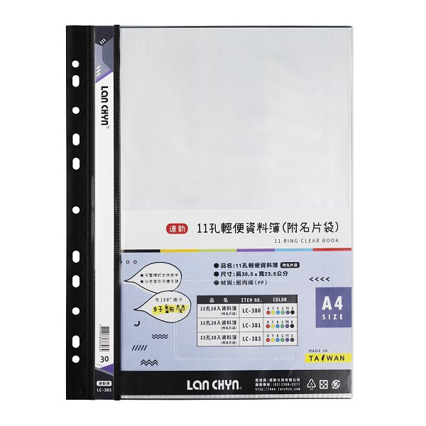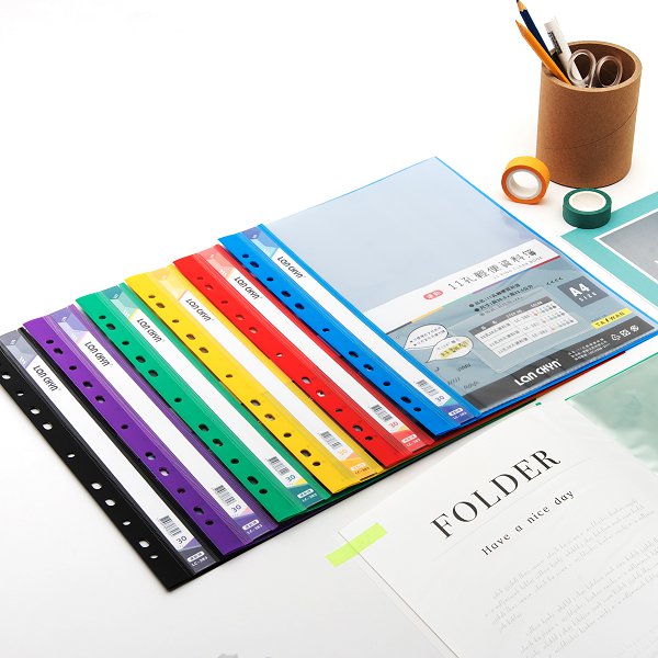 1. A4彩色資料簿-11孔/30入(附名片袋)-無印刷,尺寸適合辦公室文件整理使用。