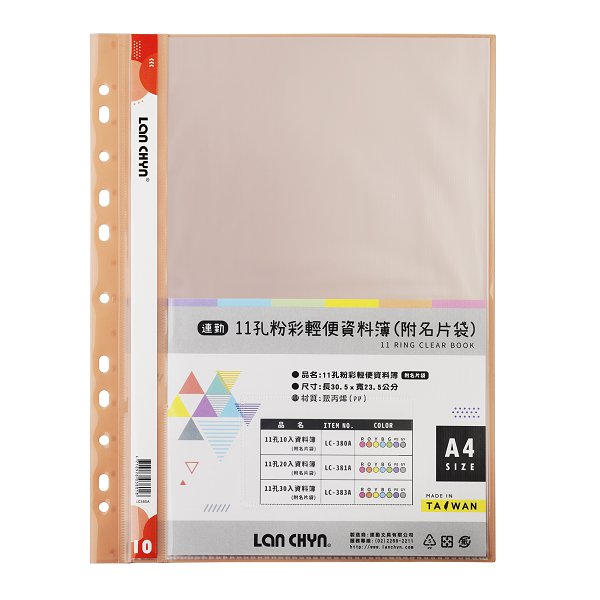 2. 尺寸為A4(305x235mm),11孔10入設計,可搭配各式活頁夾,文件整理更有序。