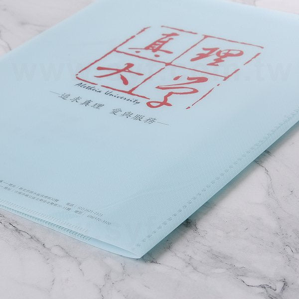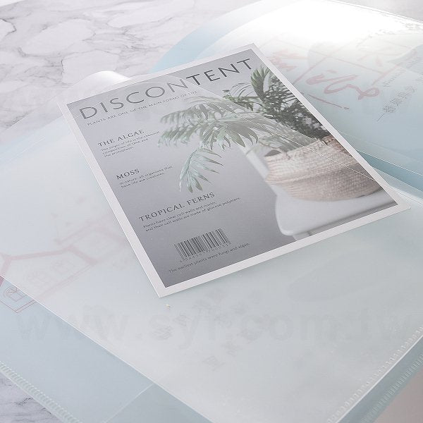 1. 4頁A4卷宗夾,專為企業客製化設計,展現專業形象。材質為PP,厚度封面40mm,內頁0.18mm,尺寸為24*31cm。