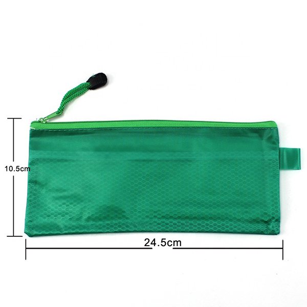 網眼布筆袋,材質堅固耐用,尺寸為24.5*10.5cm,適合放置各種筆類及文具。