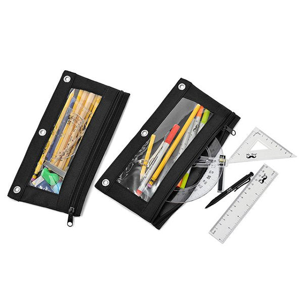 活頁夾拉鍊鉛筆盒-帆布+PVC筆袋