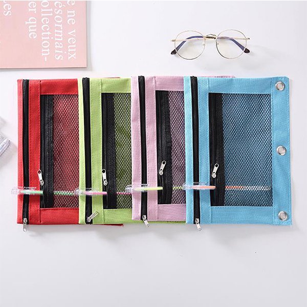 活頁夾拉鍊鉛筆盒-牛津+PVC網眼布筆袋