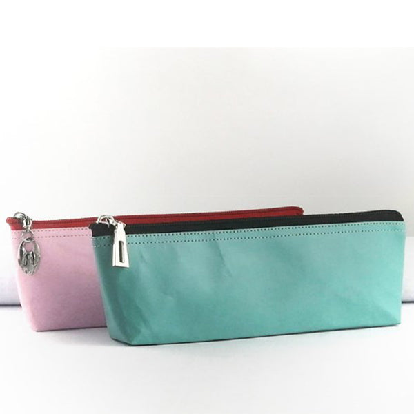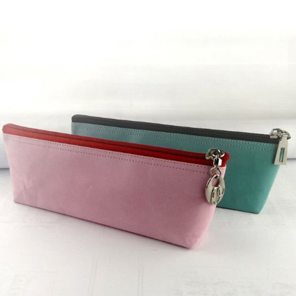 1. 簡約純色可水洗牛皮紙筆袋,材質為牛皮紙,尺寸為21*4*7cm,環保又耐用。