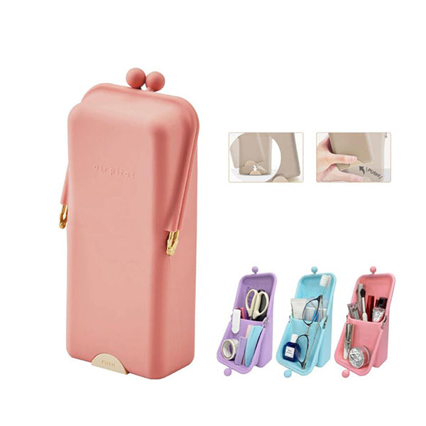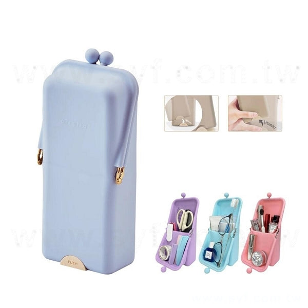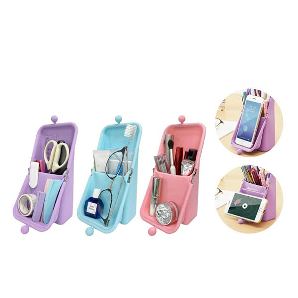 1. 多功能設計的矽膠筆袋,尺寸為21.5*8.5*4CM,可作為手機架使用,方便攜帶。