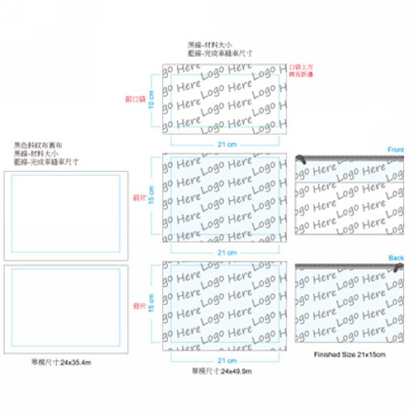 斜紋布筆袋-中型防潑水前置口袋拉鍊袋-雙面彩色印刷