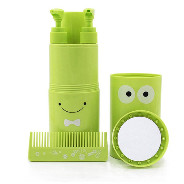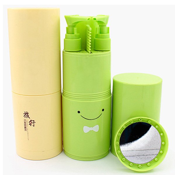 2. 套裝內含漱口杯、按壓瓶、梳子和鏡子,滿足您在旅行中的盥洗需求。