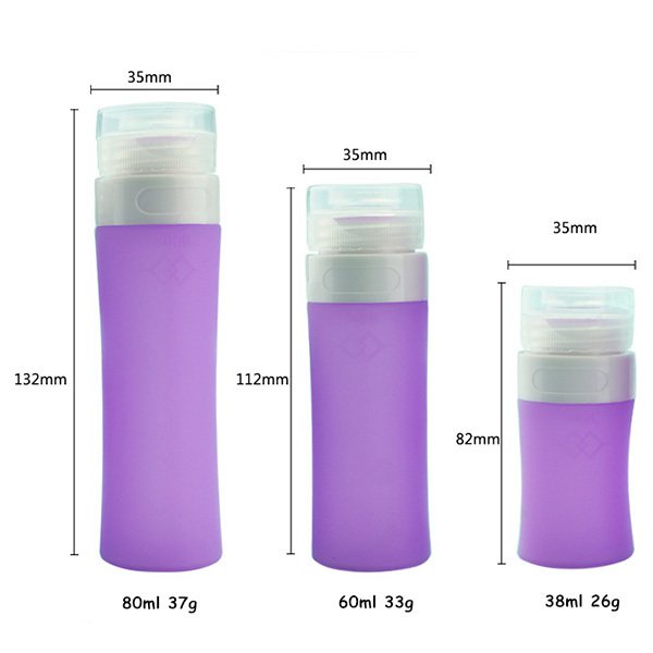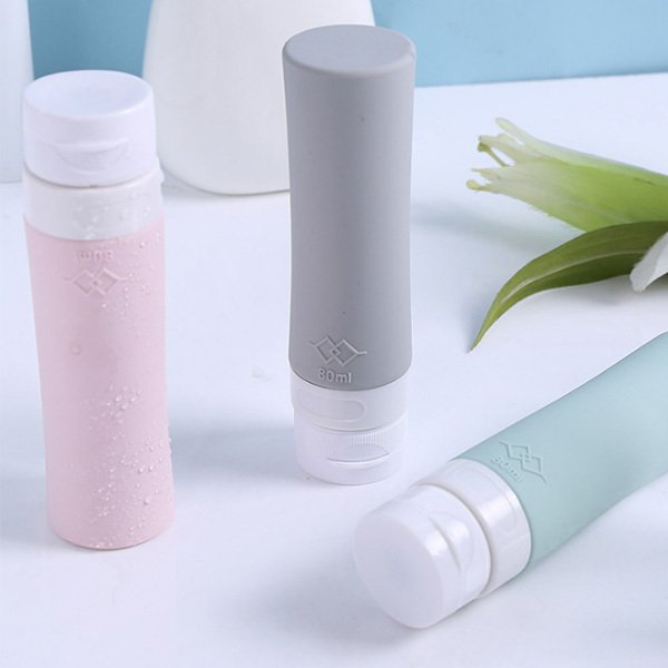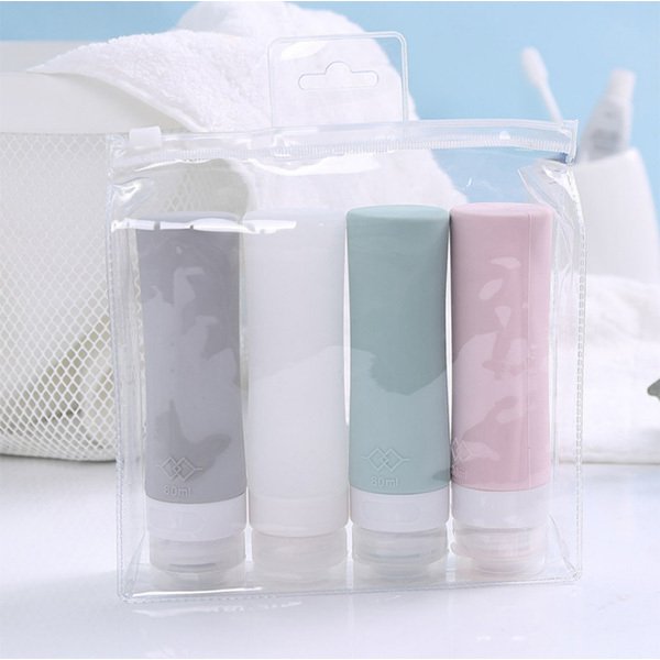 1. 4件組60ml可擠壓軟瓶食品級矽膠旅行分裝瓶組,方便攜帶各種液體產品。