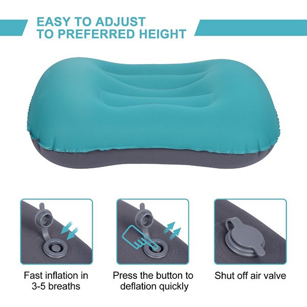 特色:此款充氣枕為單向閥,該閥具有兩層,可以輕鬆充氣。上閥用於充氣(需要大約3至5倍的全口氣吹氣),並防止空氣逸出,而下閥則將其放出(2分鐘內完全放氣)。