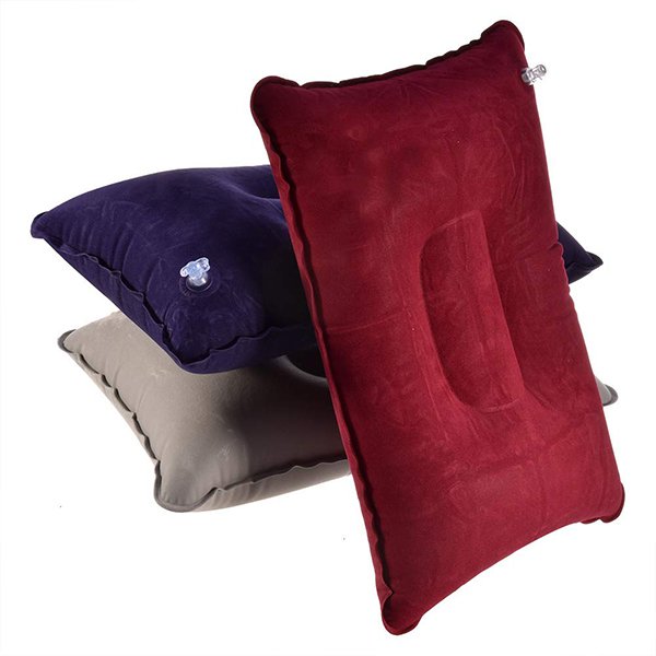 人工充氣式長型旅行充氣枕頭-天鵝絨