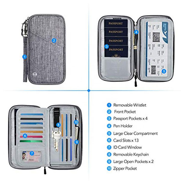 2. 多功能設計,內含多個收納袋和卡位,方便整理機票、信用卡、現金等旅行必備物品。