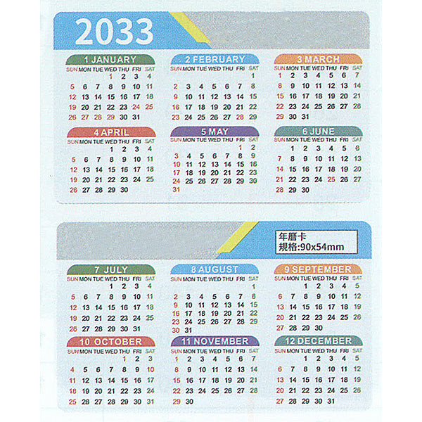年曆卡-名片型(54x90mm)年曆卡-客製化禮贈品印刷