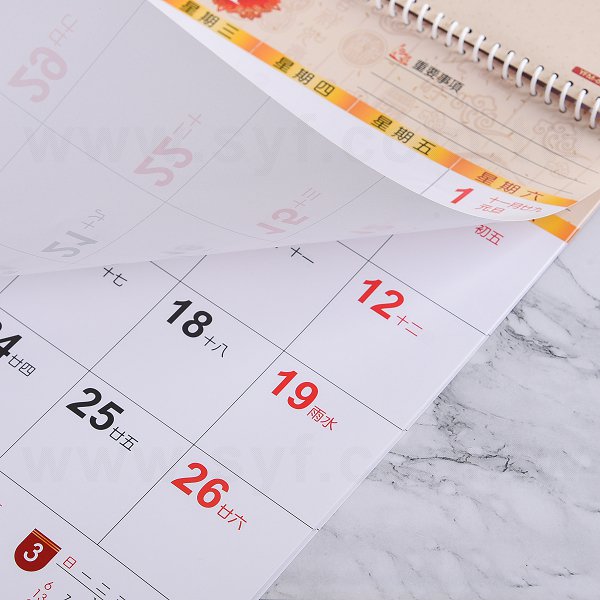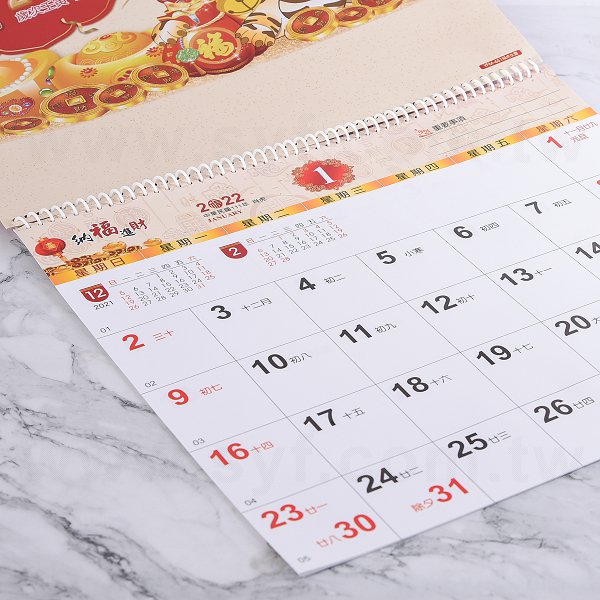 小6K月曆-彩色公版可選款-掛板燙紅金廣告印刷