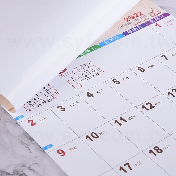 A3月曆-彩色公版可選款-掛板燙紅金廣告印刷