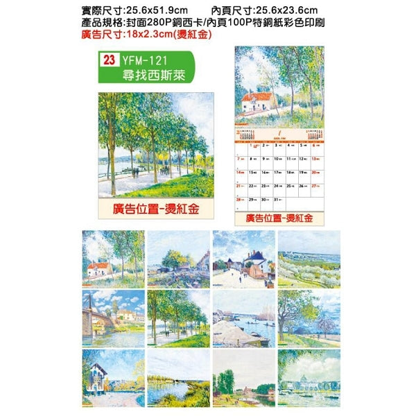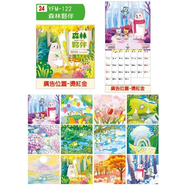 12K騎馬釘月曆-彩色公版可選款-燙紅金廣告印刷