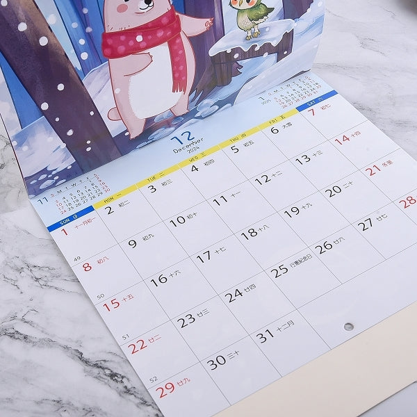 1. 12K騎馬釘月曆,尺寸適中,方便擺放在辦公桌或掛在牆上,隨時掌握日期。