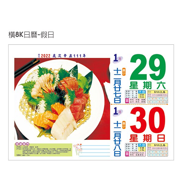8K橫式日曆-30g招貼內頁/公版掛版可選-燙金廣告印刷(9/30截止訂購)