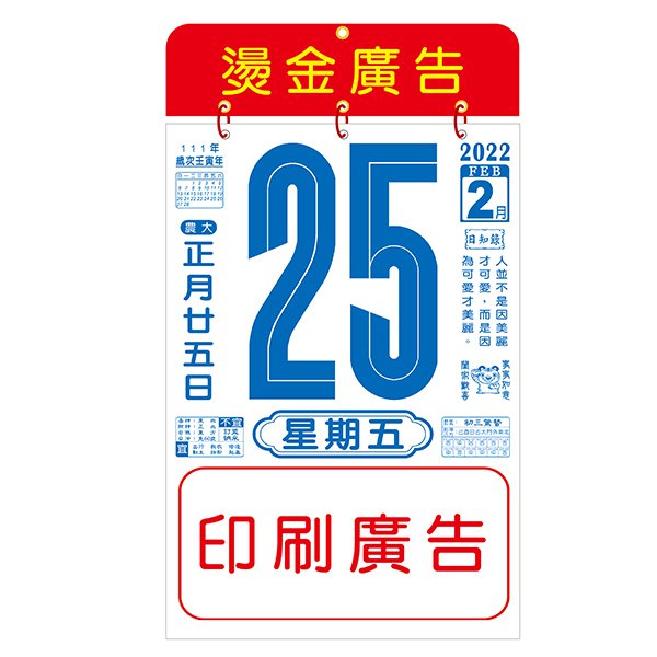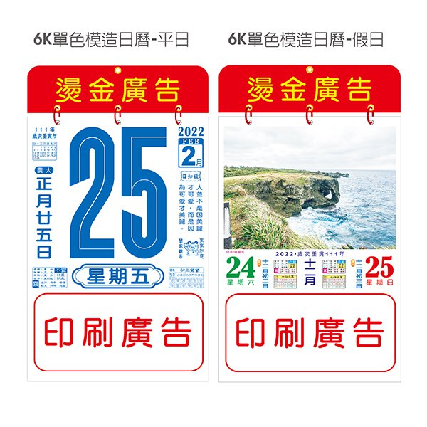 6K直式日曆-內頁42P模造廣告印刷-燙金掛版印刷(9/30截止訂購)