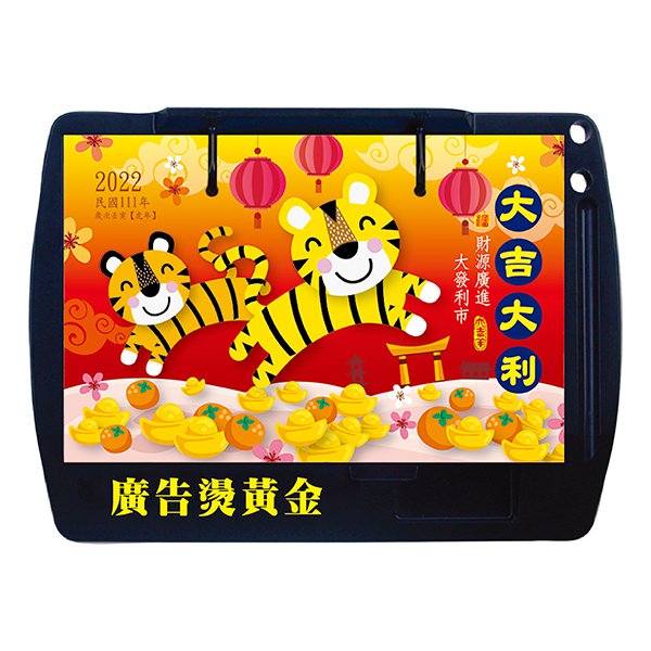 西式檯曆-橫式黑色膠檯-燙金印刷