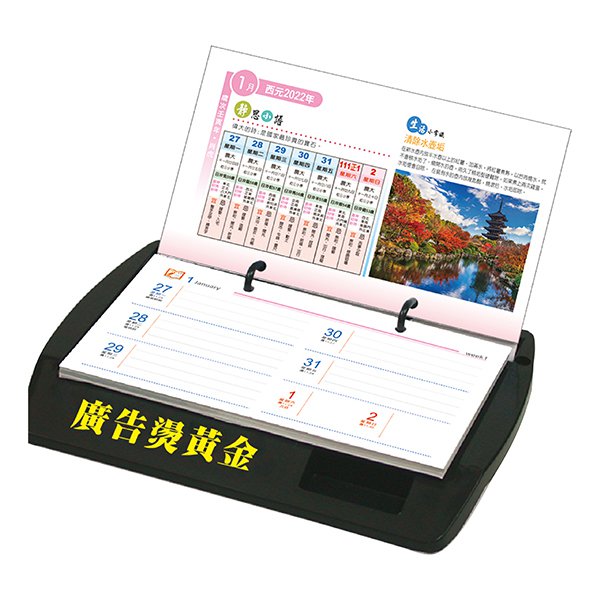 1. 專為企業訂製的西式檯曆,燙金印刷,展現高貴大方的形象。
