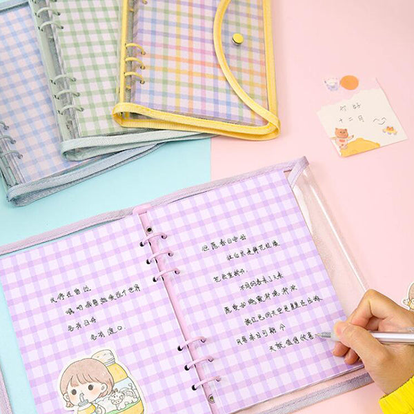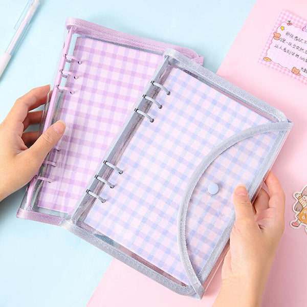 1. A5/A6 PVC工商日誌-信封型6孔活頁透明筆記本,尺寸分別為A5(17.5*24.3cm)和A6(14.5*21cm),適合商務使用。