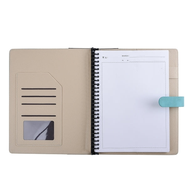 1. 16K活頁款工商日誌,尺寸適中,方便攜帶,適合商務人士在會議中記錄重要資訊。PU皮革封面設計,展現企業形象,可客製廣告頁,增加品牌曝光。左三右四/左七右筆記/全筆記內頁設計,提升工作效率。皮面加工可選烙印/燙金/燙銀/印刷,個性化定制,突顯企業風格。配件豐富,筆夾/隔板/便利貼等,貼心設計,讓禮贈更加貼心實用。