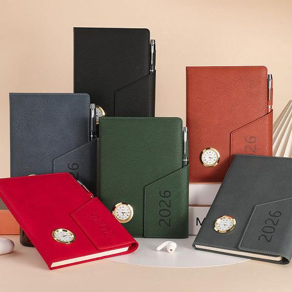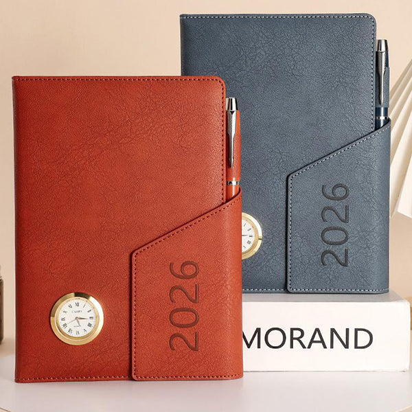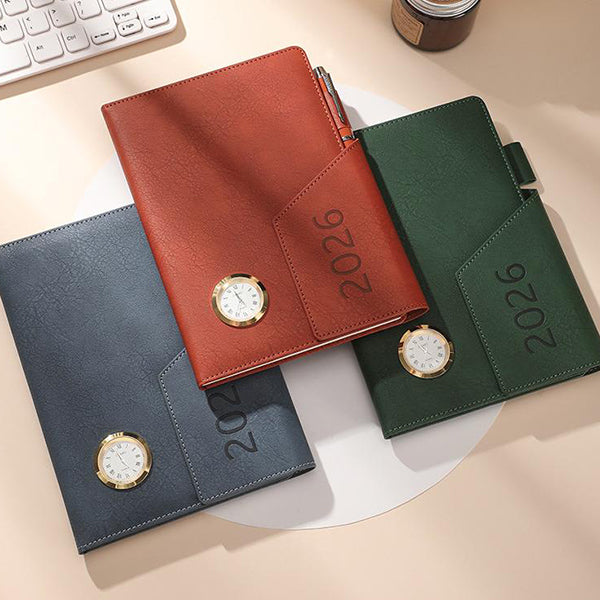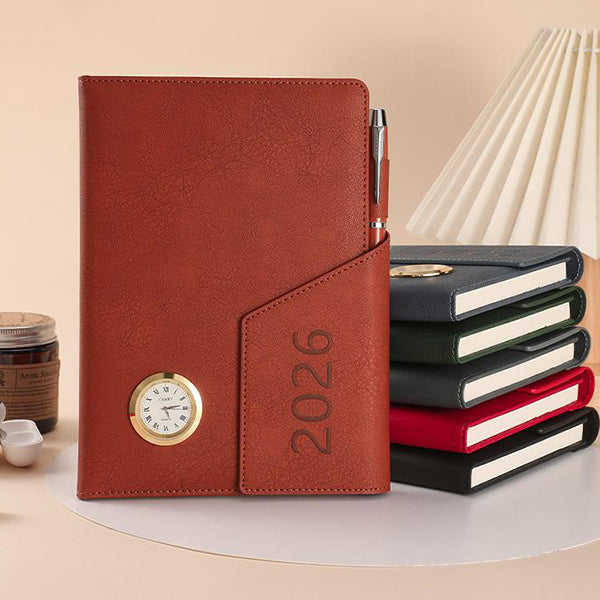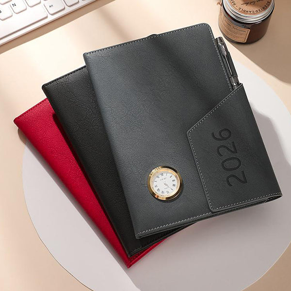 三折小時鐘高級筆記本-PU皮客製印刷筆記本