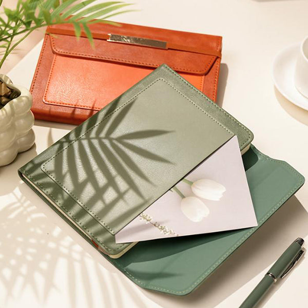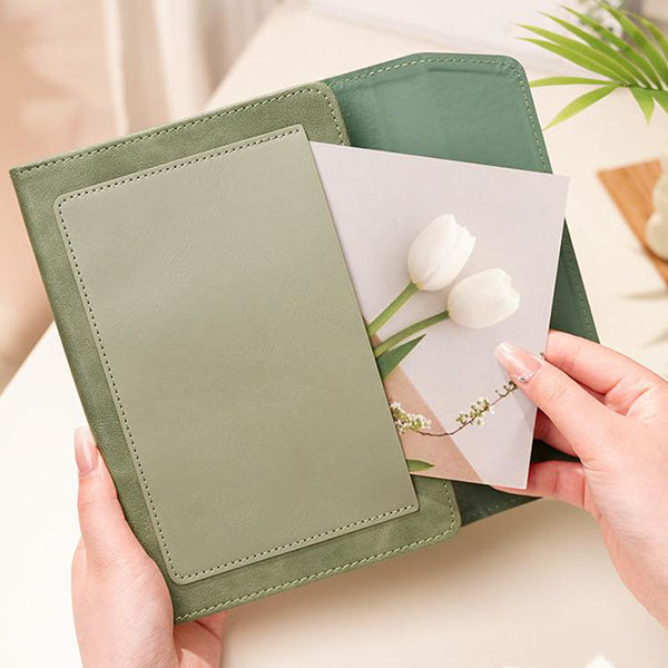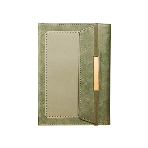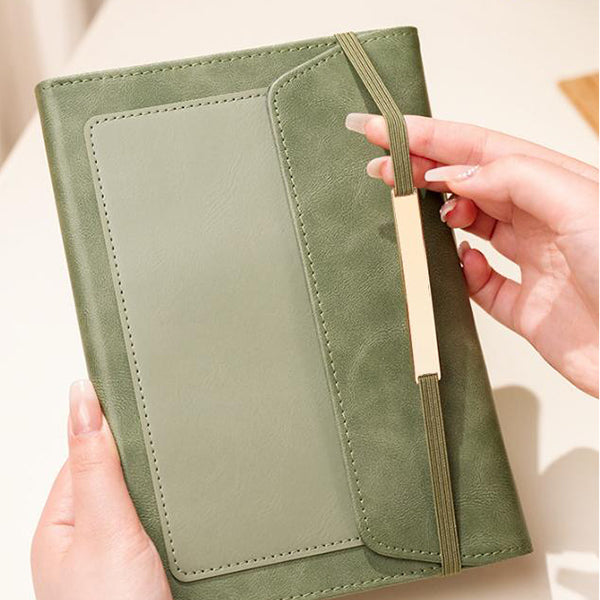 A5三折綁帶記事本-口袋設計皮革筆記本