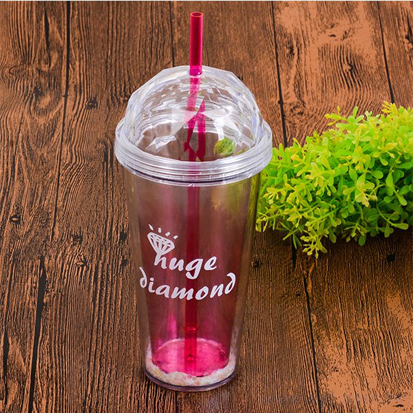 1. 鑽石蓋吸管杯,容量350ml,尺寸為口徑8.5x高21cm,方便隨身攜帶使用。