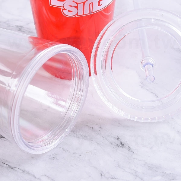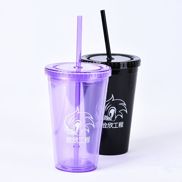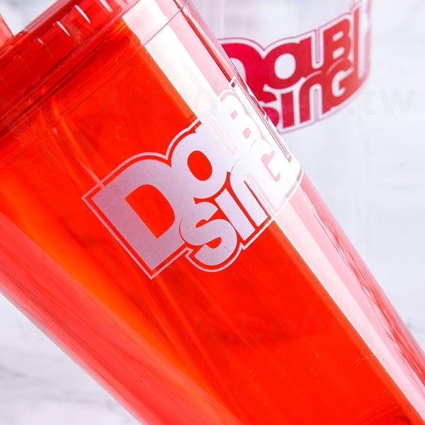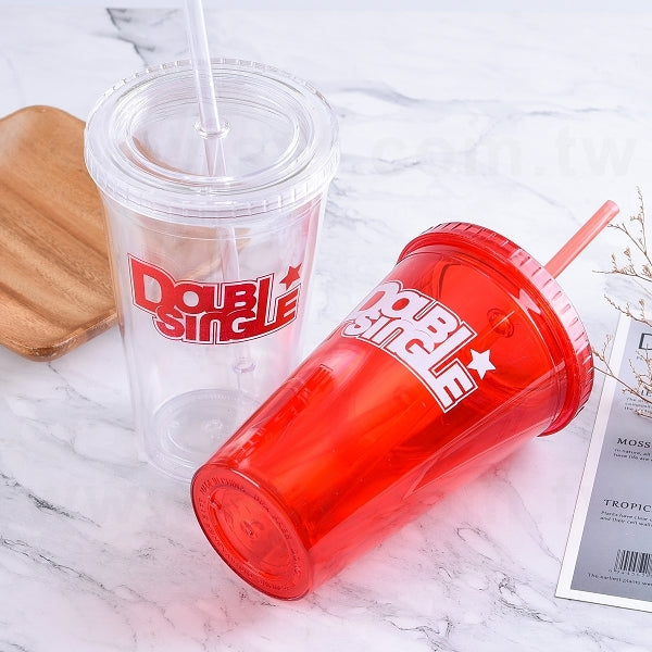 400ml廣告杯吸管杯-吸管特殊設計隨身杯-雙層設計可放PCV片
